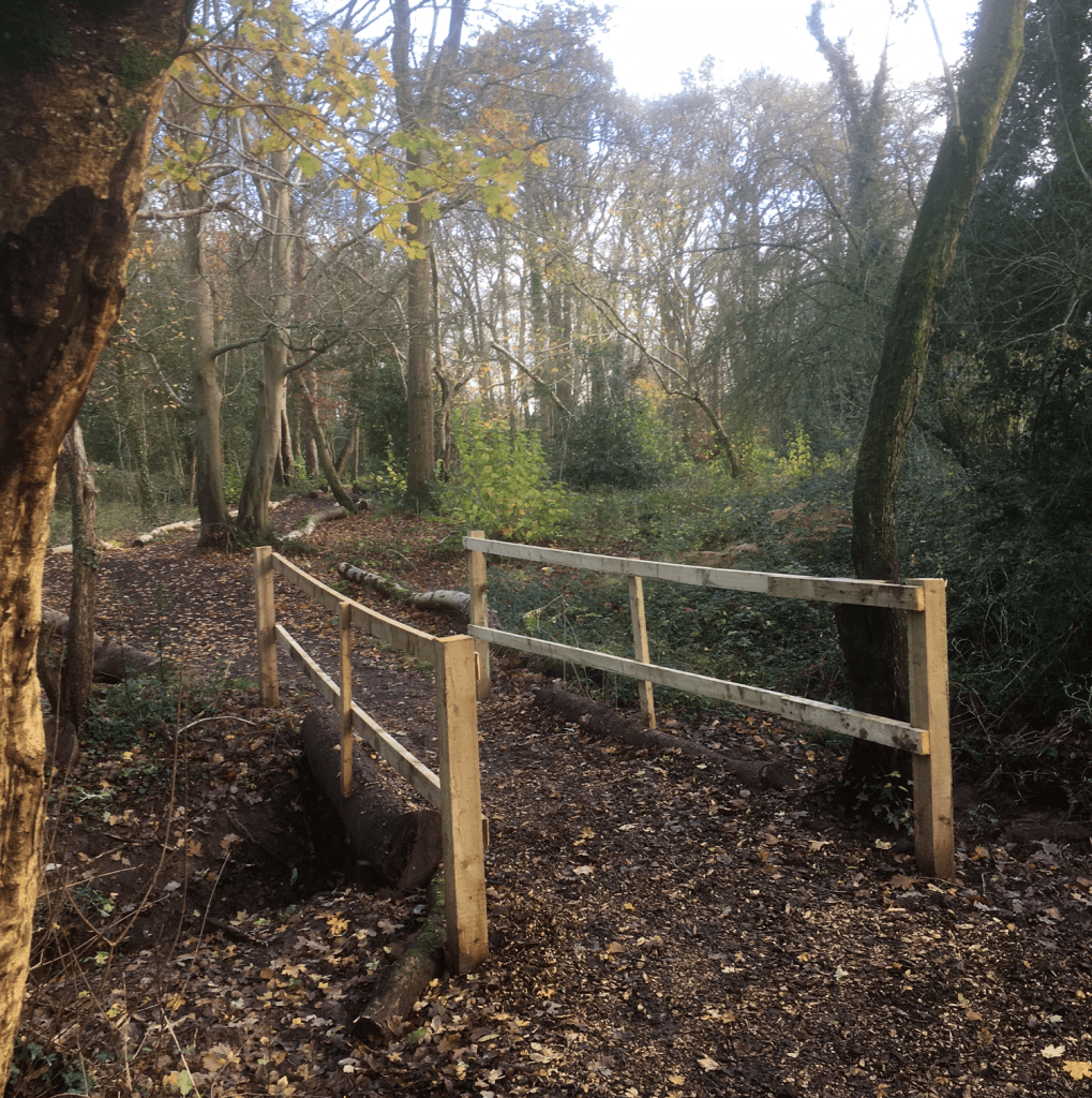It was a group of hardy perennials, which turned out for the Walking Well walk on the first Tuesday of December, so I decided to explore the new path that had been installed in Crossways Wood aka The Bluebell Wood. I noticed the new bridge over the stream in the wood as I was driving past last week, and I assumed it had been put in by Trust Green the company that are taking over the open spaces around the Miller Homes estate when it is finished.