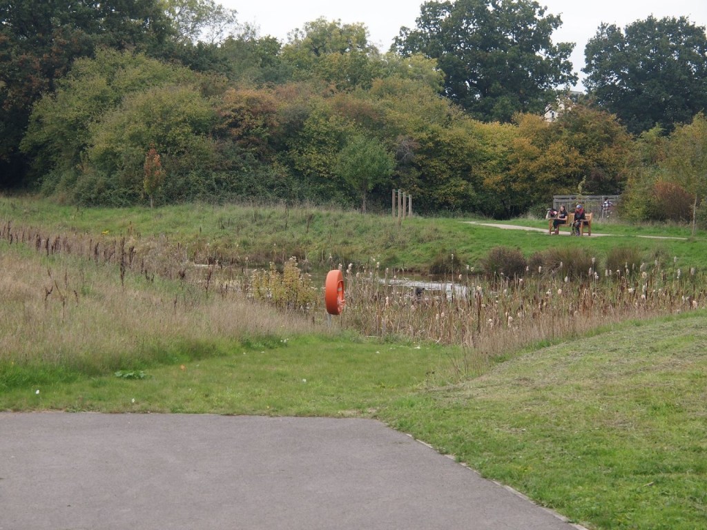 Keep to the tarmac path alongside the stream until you emerge on Gloucester Road. (There is an alternative route through the sewage works; but it is not an accessible path.)