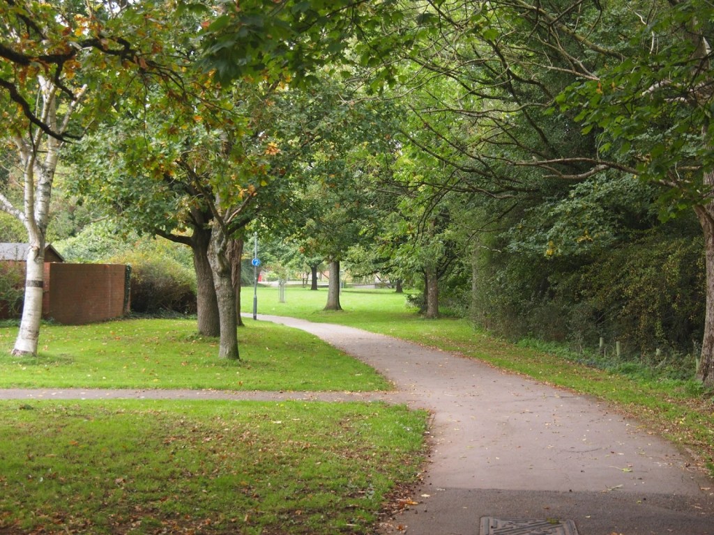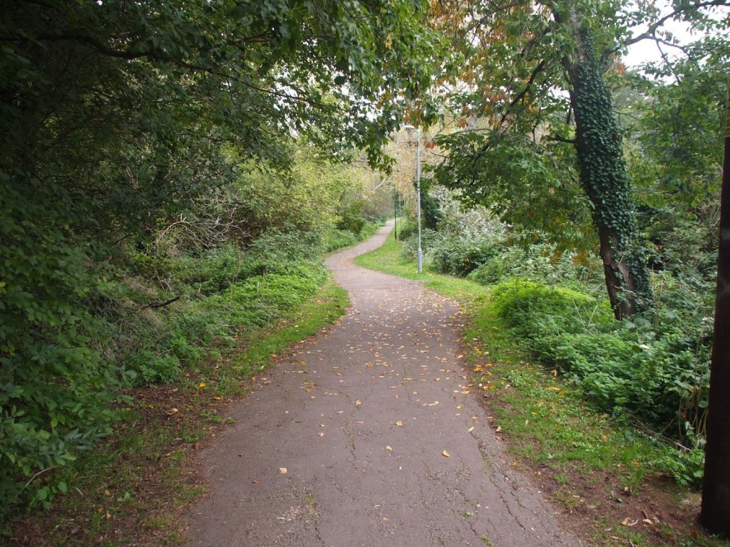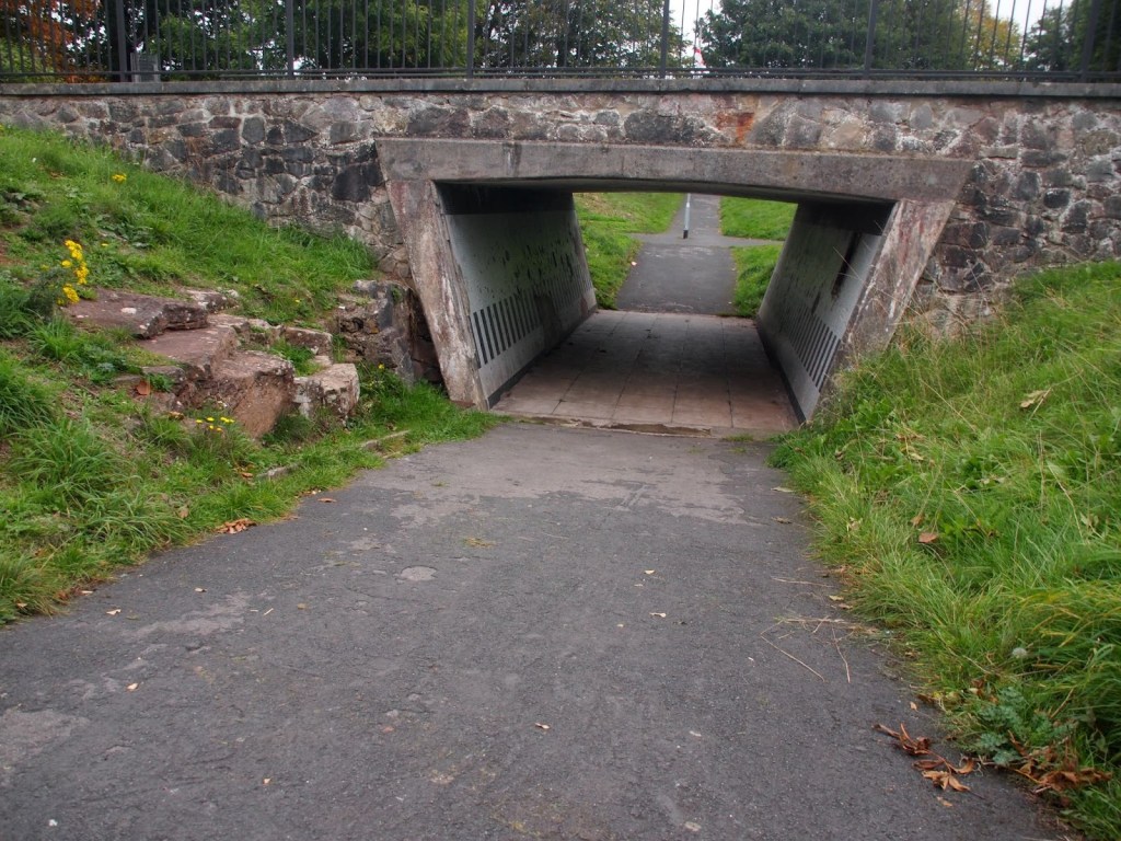 Take the middle path and bear left on the main path between two rows of houses. Bear right on the path to the underpass beneath Streamleaze.