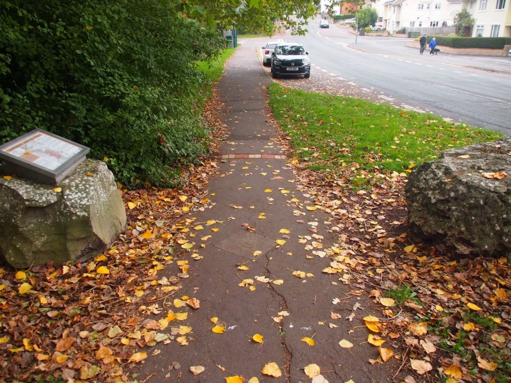 Turn left to Grovesend Road and turn right to find a path across the verge. Cross the road and turn left and then right into Malvern Drive.