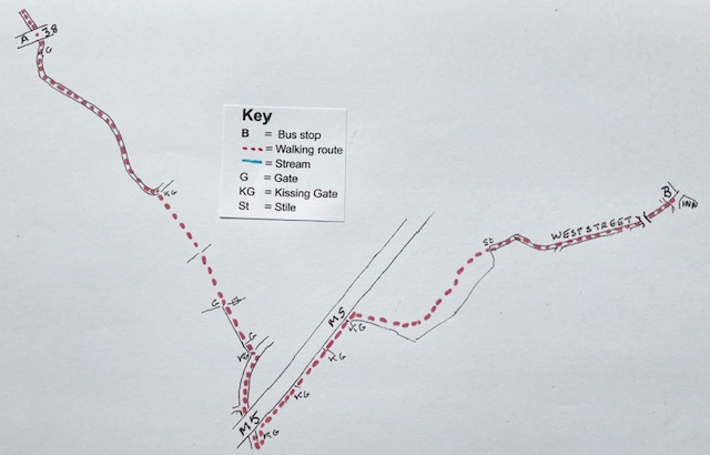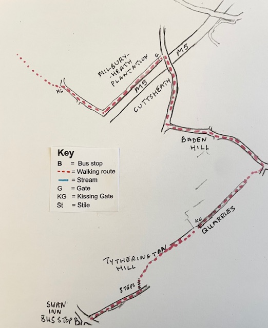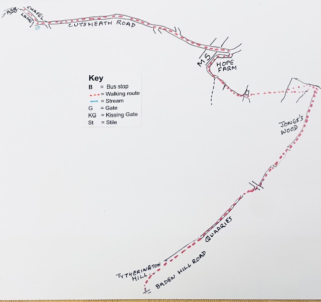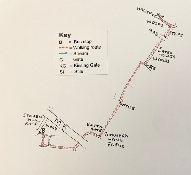 Start from the Stowell Hill Road Y2C bus stop, which is on the left just after the mini bus goes under the motorway.