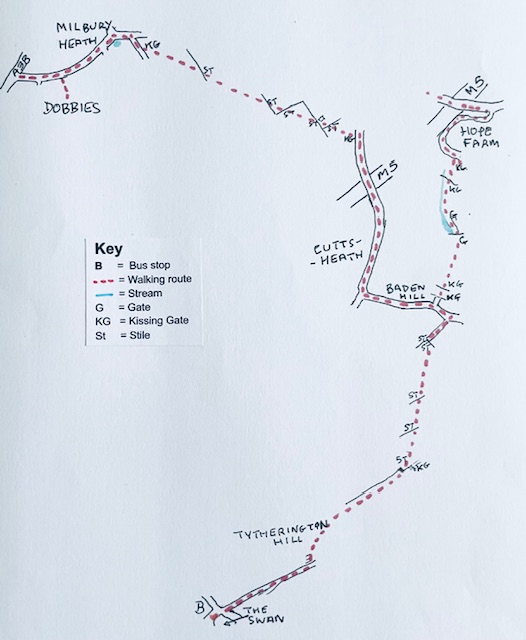 This group of walks based on the Y2C minibus was formerly known as the the Tytherington 5, but that rather undersells the possibilities. All the walks explore aspects of the ridge of Tytherington Hill and end with a descent into Thornbury with spectacular views across the Severn Vale behind. Most of them also offer views across the Ladden Vale towards the Cotswold escarpment. There are at least seven of them between 5K and 8K (or 3 miles to 5 miles.) This number can easily be increased by combining elements from different versions.