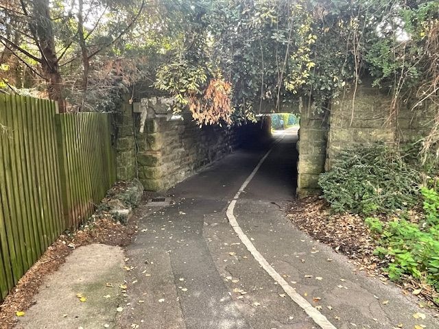 Go through the underbridge beneath Park Road and follow the path past the Scout Hut.