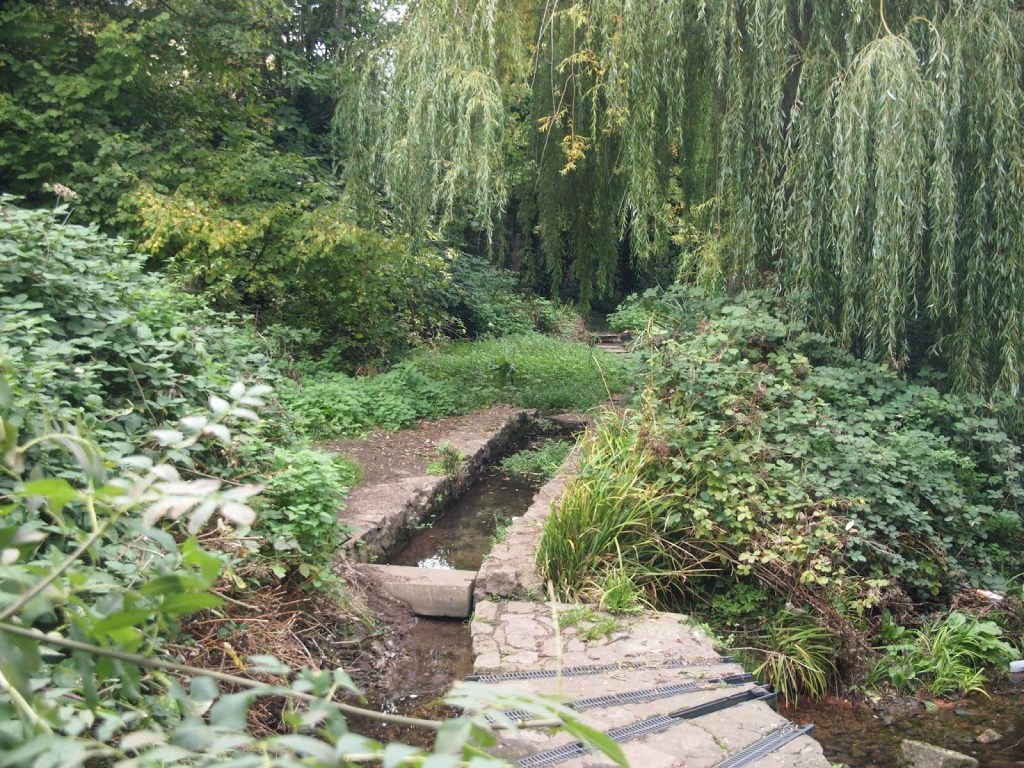 Through the kissing gate, go up to the tarmac path and turn left. Follow the path to a T-junction and turn right and immediately left over a footbridge.Follow the Streamside Walk upstream past the silted up remains of a pond and another footbridge.