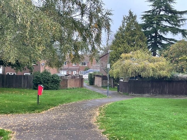 Turn left and cross the road into Ringtail Lane. Follow the lane and path through to Barley Fields. Cross the road to the cut through on the other side. Cross Harvest Way to pick up the yellow path past the play equipment and follow it to a cul de sac.